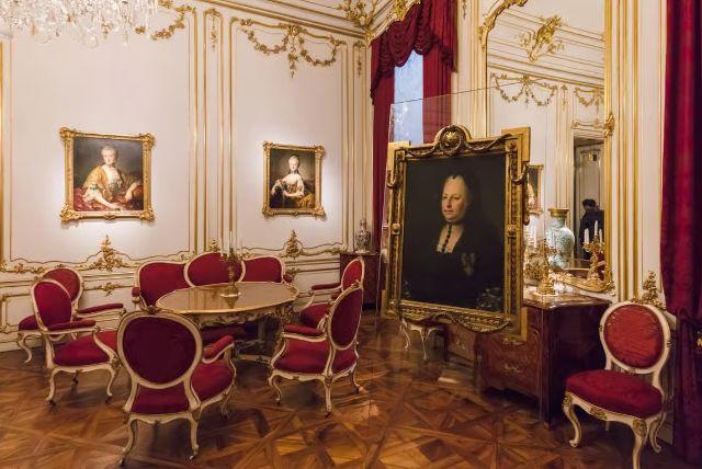 חדרי הייצוג עוצבו כדי להרשים. תקרות מצוירות, נברשות קריסטל וקירות מצופי זהב יוצרים מסגרת דרמטית. בתוך סביבה זו, הדיוקן מקבל עוצמה כפולה. הוא אינו תלוי על קיר ריק אלא משתלב במכלול מלכותי. המרחב מחזק את המסר.